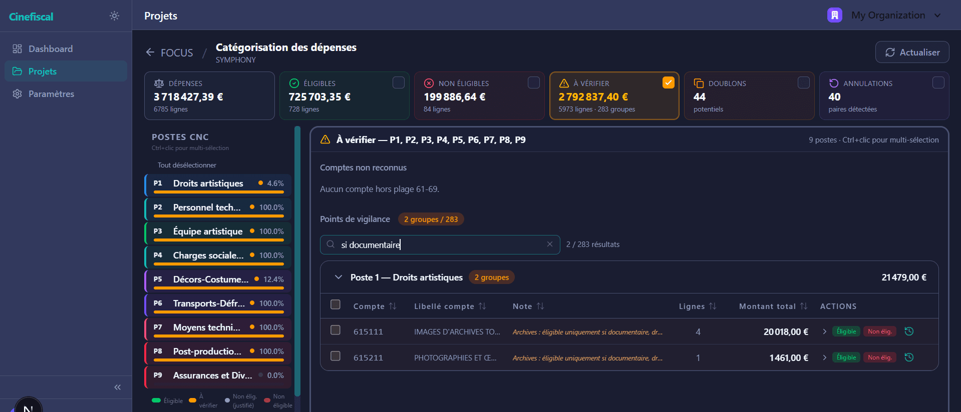 Barèmes ACFDA, plafonds CNC, détection d'écarts — tout est vérifié.